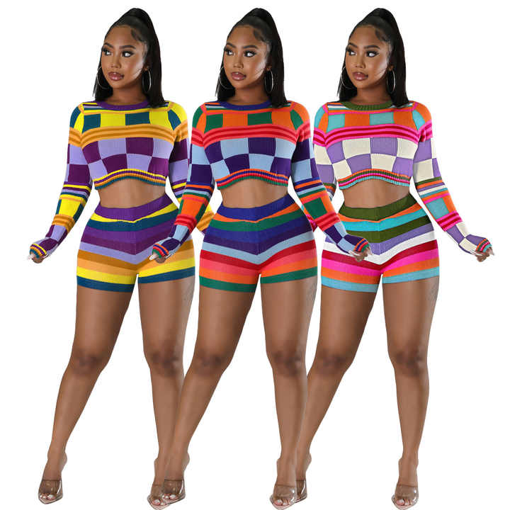 Fashion Fall Winter Clothes Casual Women Long Sleeve Crop Top Ladies 2 Piece Elegant Knit Shorts Set Matching Suit Buy Fashion Fall Winter Clothes Casual Women Long Sleeve Crop Top Ladies